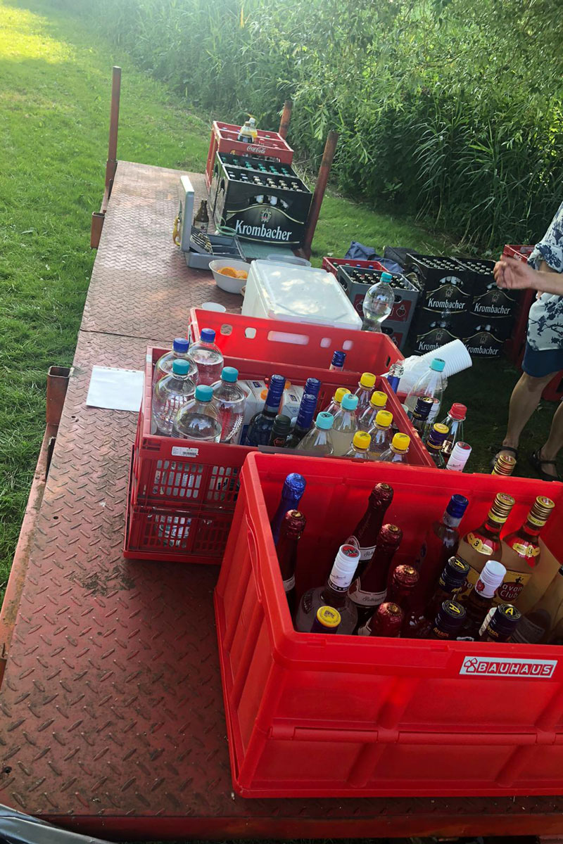 Die Wetterlage hat es uns glücklicherweise wieder erlaubt an unserem schönen AWV Strand zu grillen. Tidebedingt leider dieses mal ohne Hochwasser und Badezeit zum Sonnenuntergang. Dank tatkräftiger Unterstützung des Trecker-Teams von Lotte konnten wir Tische, Bänke sowie die Grillutensilien vom Vereinsheim an die Badestelle fahren. Die Ladefläche des Anhängers eignet sich nämlich auch sehr gut als Bar-Tresen. Vielen Dank an die freiwilligen Helfer:innen vom AWV und FWV, die unseren Gästen hier einen tollen Auftaktabend bereit haben.